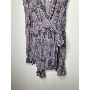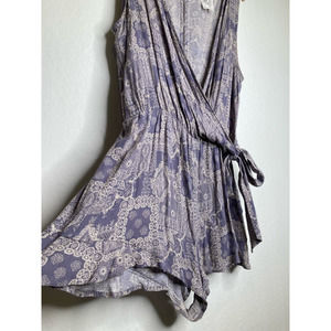 Sadie & Sage Womens Romper Purple Geometric Top Tie Waist Boat Neck Button M