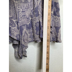 Sadie & Sage Womens Romper Purple Beige Blouse Geometric Tie Waist Boat Neck Button top M