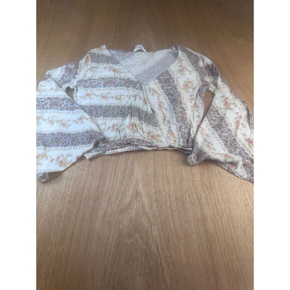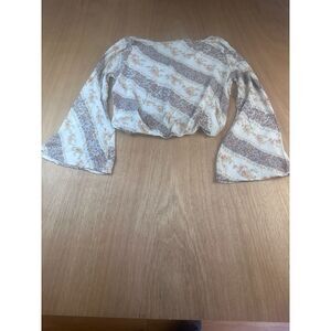 Sadie & Sage XS Boho Floral Bell Sleeve Crop Top Fall Layering Cream Lightweight