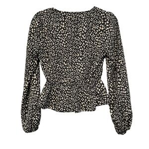 Sadie & Sage XS Peplum Blouse Black White Dot Print Long Sleeve