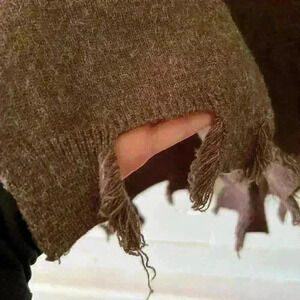 Sadie & Sage angora & polyester s/m sweater, distressed destroyed hem, brown EUC