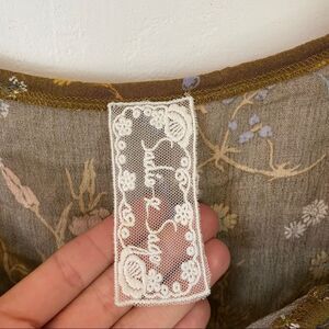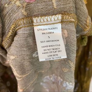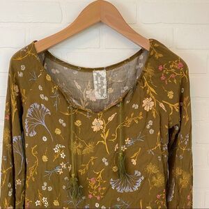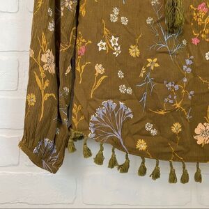 Size Small. Sadie and Sage floral print blouse with tassel trim and drawstring tassel neckline. Tag has a small stain.