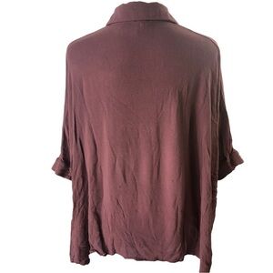 Sadie and Sage Button Front Blouse Women L Mauve Oversized Width Pointed Collar