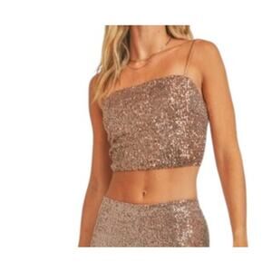 Sadie x Sage Women's Medium Copper Pink Disco Inferno Sequins Cami Crop Top