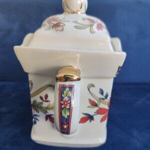 Sadler Teapot, England. White with green & red florals. Gold Embellishment. VTG