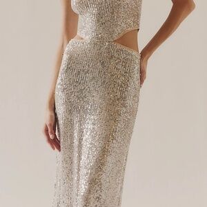Saemdi Fitted Sequin Cut-Out Maxi Dress • Size S • Silver