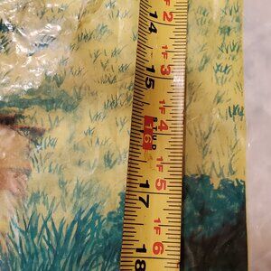 Plastic (thin) Mat is 32" wide x 20" long - slight crinkles as normal wear. One miniscule tear (app. 1/4 to 1/2 inch) - can be taped - see photo showing length of 20" - tear is shown in that photo.
