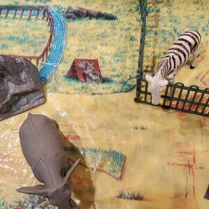 Safari Animals Figures / Activity Play Mat & Storage Box, Realistic Plastic - See Video