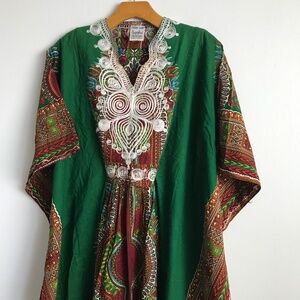 Safari Club Mumu Dress Green Batik Draped Kaftan Womens OS