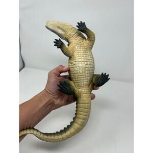 This Incredible Creatures Alligator Babies on Her Back figurine by Safari Ltd is in good condition and measures 12 inches long. It has some light wear, but overall, it's a fantastic piece for collectors or for educational play.