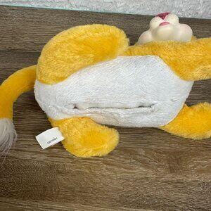This plush cat is clearly living the dream—lounging around, embracing its yellow fabulousness, and toting its kittens in style like a pro.