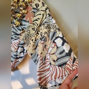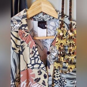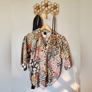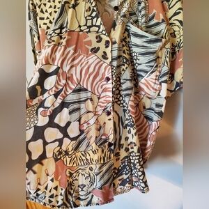 Epic Safari vintage button down shirt, colorful, abstract fun, bold print, tigers, giraffes, zebras, animals, jungle, safaricore, vintage Large runs small, brand is "Heat"