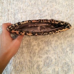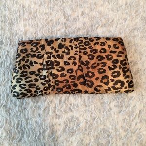 Leopard clutch with no closure. Has inside zipper compartment for IDs/money. In like new condition