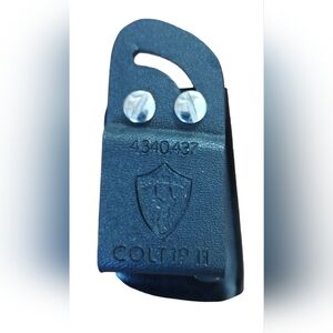 SAFARILAND MAGAZINE POUCH. TOOLED LEATHER. BLACK. ADJUSTABLE. 1911 COLT COMMANDER, GOVT. SIG P220. SINGLE STACK.