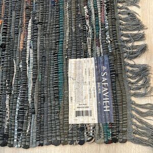 This is a beautiful Safavieh 100% Cotton 6’ x 6’ Multi Ink Rug. Per free. No issues. No stains. No tears. All fringe is intact and even.