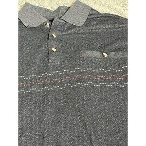 Mens Large Safe Harbor Polo Black with pattern across chest. Banded bottom.