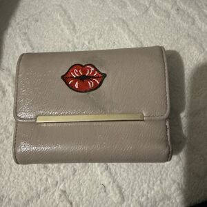 Safe Keeper Tri-Fold Wallet Zippered Coin /Card Slots Beige W/ Red Lips Sz 5X4X1