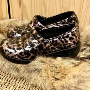 Safe T Step Clogs Women SZ 7 Leopard Slip Resistant Comfort Shoes Occupational
