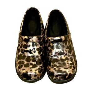Safe T Step Slip Resistant Comfortable Shiny Leopard Print Clogs/Mules. Comfort soles, perfect for the professional that's on their feet a lot!