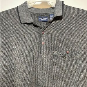Classic gray pullover sweatshirt. Features a collared design. Comfortable and stylish.