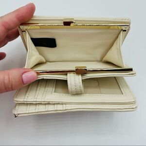 This cute Safekeeper wallet is in excellent pre-owned condition. I’m not sure it was even used that much because it’s very clean. It has plenty of room for cards and a spot for change. There is a little section inside where it looks like some threads are missing. Safekeeprs keeps card information safe by blocking RFID technology. The wallet is approximately 5 1/2”x41/2”.