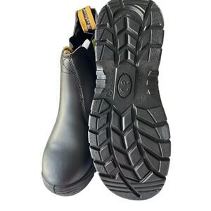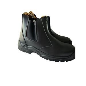 Discover the perfect blend of style and safety with Safetoe Men's Chelsea Work Boots. Crafted from water-resistant smooth cow leather, these boots are designed for the hardworking individual who values both comfort and protection. The steel toe and puncture-proof features ensure your feet stay safe, while the breathable sandwich air mesh lining and shock-absorbing insole provide all-day comfort. Ideal for workwear, these slip-on boots are perfect for construction sites, warehouses, or any demanding environment. New condition: Safetoe Water Resistant Leather Steel Toe Safety Work Boots Sz 8 men's sz 10 women's / Sz 41.
