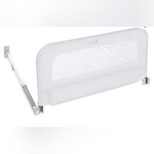 The Summer® Single Fold Safety Bedrail in White is an essential help when transitioning your child from the crib to a bed. This fold-down bedrail features a sturdy metal frame with a breathable fabric-and-mesh cover. It’s quick and easy to assemble, and no tools are needed for installation. Use this rail with mattress and box spring sets, or with platform beds that have a solid base. The bedrail can be installed on either side of an adult-size TWIN, DOUBLE/FULL and QUEEN bed. It’s safe for children 2-5 years old. This guard rail is not intended for adults, and not compatible with cribs, toddler beds, bunk beds, water beds, inflatable mattresses, or beds with slats.