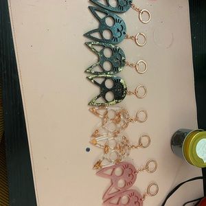 This stylish keychain gives a sense of safety wherever you go. Made with epoxy resin in several different colors to suit your style. The kitty hangs on a rose gold keychain the kitty is 3 inches in its own and 5 inches with the keychain.