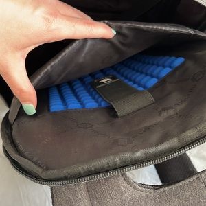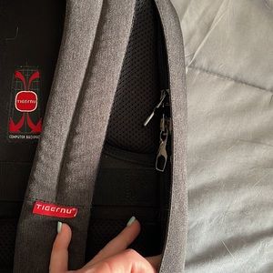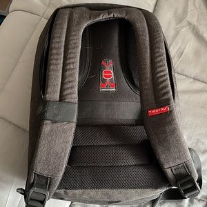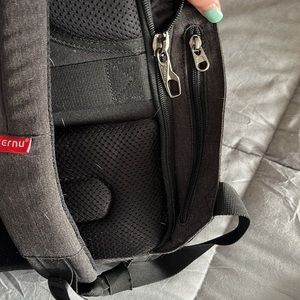 Theft proof backpack. No visible zippers. Lots of internal storage. Computer sleeve with padding is 9 x 12
