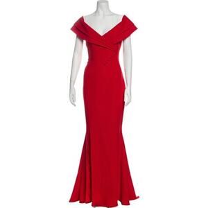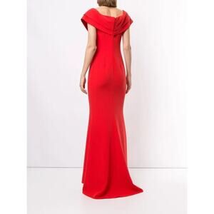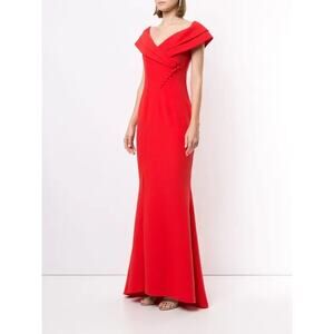 Safiyaa V-Neck Off-The-Shoulder Mermaid Maxi Dress in size M in very good condition. Red Madison off-the-shoulder gown from Safiyaa featuring a fitted silhouette, a concealed rear zip fastening, short sleeves, a front slit and a long length.