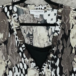 Sag Harbor 1X Shirt Top Gray Floral Short Sleeve Scoop Neck Layered Casual