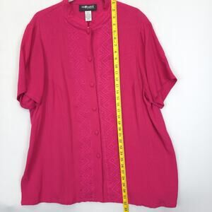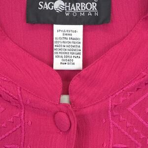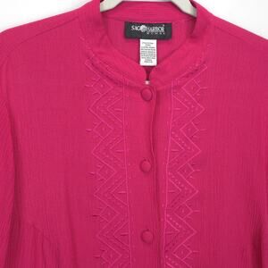 Sag Harbor 2 Pcs Set Pants & Tunic Embroidered Gauzy Elastic Waist Pockets Pull On Women 1X Fuchsia Travel