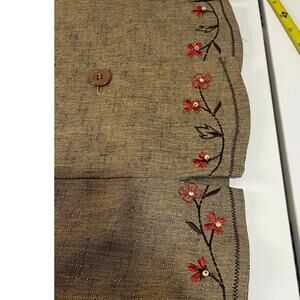 Ads some style and comfort to your wardrobe with this Sag Harbor two piece set. Wear top as a jacket or shirt the embroidered flowers add a decorative touch. Top has short sleeves and shoulder pads, and has button closure with front pockets. Pants have an elastic waist for comfort. Womens size 10- excellent preowned condition