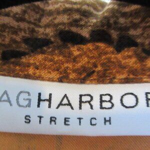 Sag Harbor Autum Colors polyester n spandex LS blouse, size XL. The texture of this fabric is very soft; there also seems to be a sort of woven texture, making it look foe polished. This is a beautiful, lined and detailed blouse for a bigger size, and just in time for Fall! Warm yet light, washes and travels well.