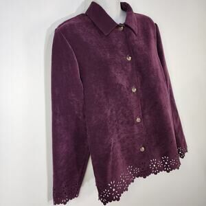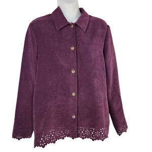 Sag Harbor Bice Shacket Shirt Jacket Sz 10 Faux Suede Collared Button Vtg Eyelet