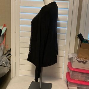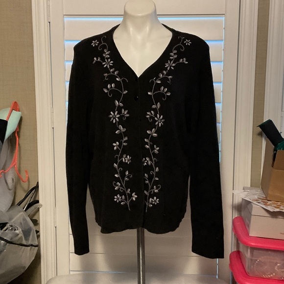 Sag Harbor Black Cardigan with White Floral Embroidery