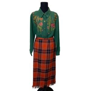 Sag Harbor Blanket Fringe Skirt Sz 16 & Crop Jacket Red Plaid