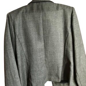 Vintage autumn blazer, size 12. This lightweight olive green jacket with an embroidered leaf design on the front looks like soft chevron wool tweed but is polyester so is washable! The blazer is unlined with faux pocket tabs and has shoulder pads. It is in very good condition and would make a great addition to an autumn outfit or just for that funky look with jeans and a tee!