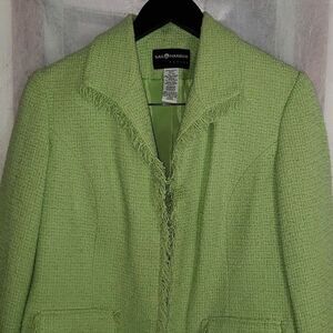 Sag Harbor Lined Blazer Jacket Bright Green Fringe 90's Style Womens Size 10P