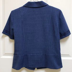 Sag Harbor Blazer Womens 12P Blue Embroidered Short Sleeve Button