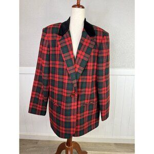 Sag Harbor Blazer Womens 16 Jacket Green Red Tartan Plaid Holidays Academia Wool