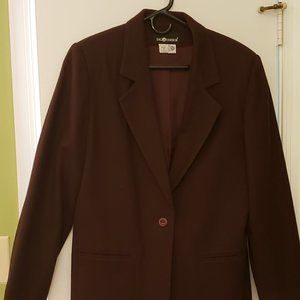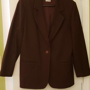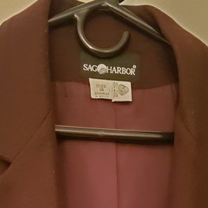 Sag Harbor Blazer with Lining; 2 side Pockets; 100% Wool; Color-Dark Brown; Size 14; Excellent Used Condition; Beautiful with Dress Slacks or Jeans!!
