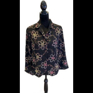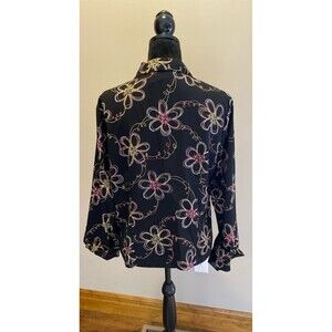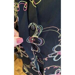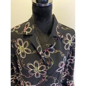 Sag Harbor Blouse Size 12 Hidden Buttons Down Collared Cuffed 3/4 Sleeves Black