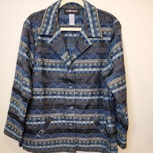 Sag Harbor Blue Multi-textured Weave Button Front Jacket Coat Womens Sz 16 EUC Shacket
