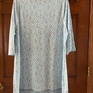 It has 3/4 sleeves, front pocket and boat neck. Size guide is 3X US Side 22W - 24W Bust 49-51 Waist 44-46 Hips 53-33 Looks like new without tags. Very gentle worn.