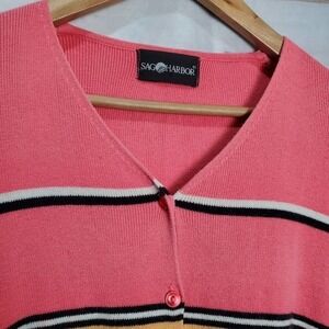 Sag Harbor Cardigan Womens XL Pink Striped V-Neck Knit Button Sweater Y2K 90s