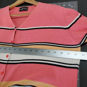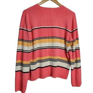 Sag Harbor Cardigan Womens XL Pink Striped V-Neck Knit Button Sweater Y2K 90s
