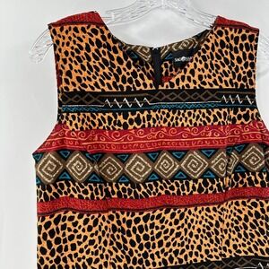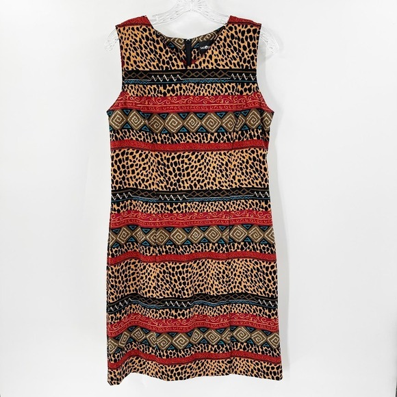 Sag Harbor Dress Brown Leopard V-Neck Sleeveless Sheath Dress Women's Size 8