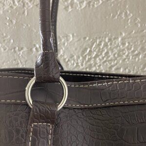 Sag Harbor Faux Croc Crocodile Handbag Large Purse Dark Brown 13" width