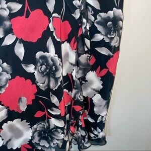 Casul business casual, wear to work, wedding guest, flora, colorful, bright, Holiday, fall, midi, flowy, ruffle, feminine